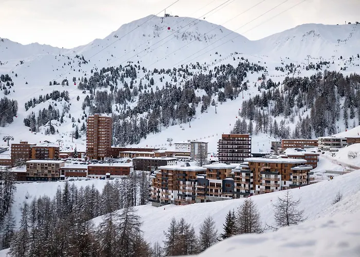 Het Sun Valley Residence La Plagne hotel met 4 sterren ligt op 2 km afstand van de Plagne Bellecôte en biedt voorzieningen zoals een vergaderzaal. Er is een zwembad en wifi in de hele accommodatie in het aparthotel.